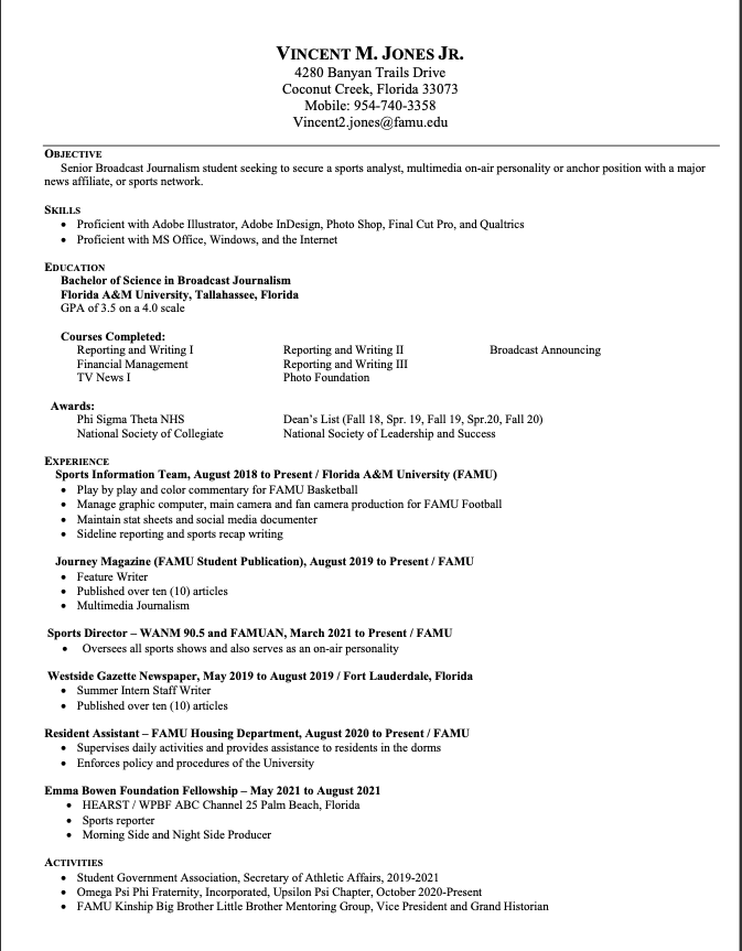 I am at my happiest when I am working in or around the area of sports. On a larger scale, I love the profession of journalism as a whole. Over the course of my life, I have made it a priority to be diligent and persistent especially when it pertains to my career. As a journalist I am completely open to learning and more importantly, I take the time to listen so that the best product is produced. Moreover, I am someone who is passionate and looks forward to challenging and rewarding experiences.